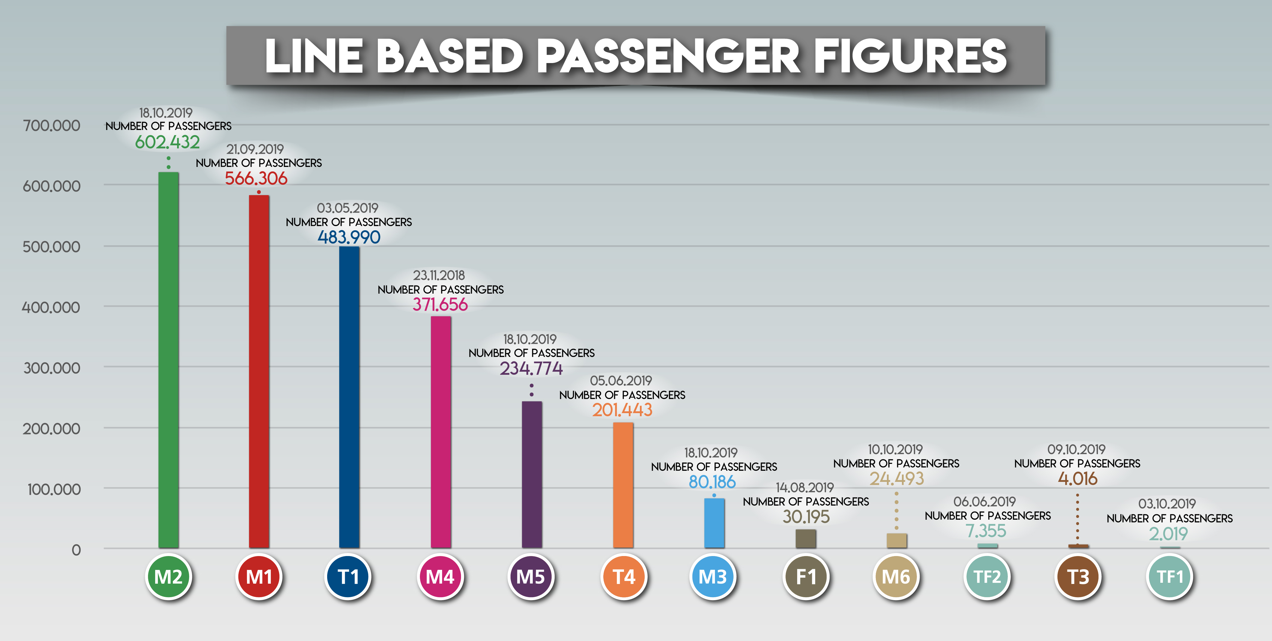 Metro Istanbul achieved a great success and broke ridership record earlier by carrying a total of 2.310.256 passengers in Friday, 2nd November 2018. After a year of this success, Metro Istanbul increased this number by 60.000 more passengers. There are different factors that contributed to this increase such as the commissioning of the second stage of M5 Uskudar-Cekmekoy Metro Line and % 45 capacity increase of M2 Yenikapi-Haciosman Metro Line with 8 Carriage services during week days. We are aiming to double this number by commissioning the lines that are under construction.