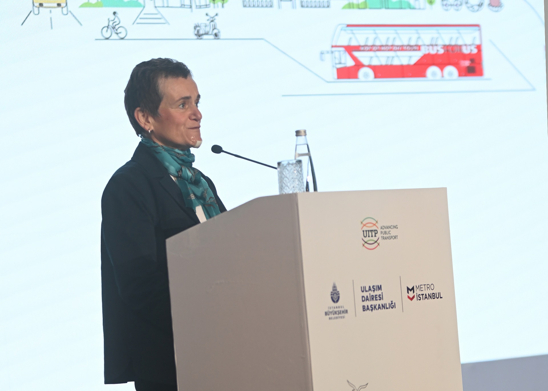 İBB Genel Sekreter Yardımcısı Doç. Dr. Pelin Alpkökin, “Günlük yaklaşık 20 milyon motorlu araç ve 12 milyonun üzerinde toplu taşıma yolculuğunun yapıldığı megakent İstanbul, yaklaşık 380 km’lik raylı sistem ağı, 52 km’lik metrobüs hattı, sayısı 5.000’i aşan otobüs filosu ve deniz hatları ile kapsamlı ve akıllı bir ulaşım ağına sahiptir. İstanbul’da toplu ulaşım hizmet kalitesinin ve erişilebilirliğinin en yüksek, entegrasyonun ise en etkin ve verimli şekilde yönetilmesi için çalışmaya devam ediyor, bu hedefle yeni yatırımları yürütüyor ve planlıyoruz. Son beş yılda, yerel bütçemiz ve finansman kabiliyetimizle kentsel metro sistemini 65 km'den fazla artırmayı başardık.