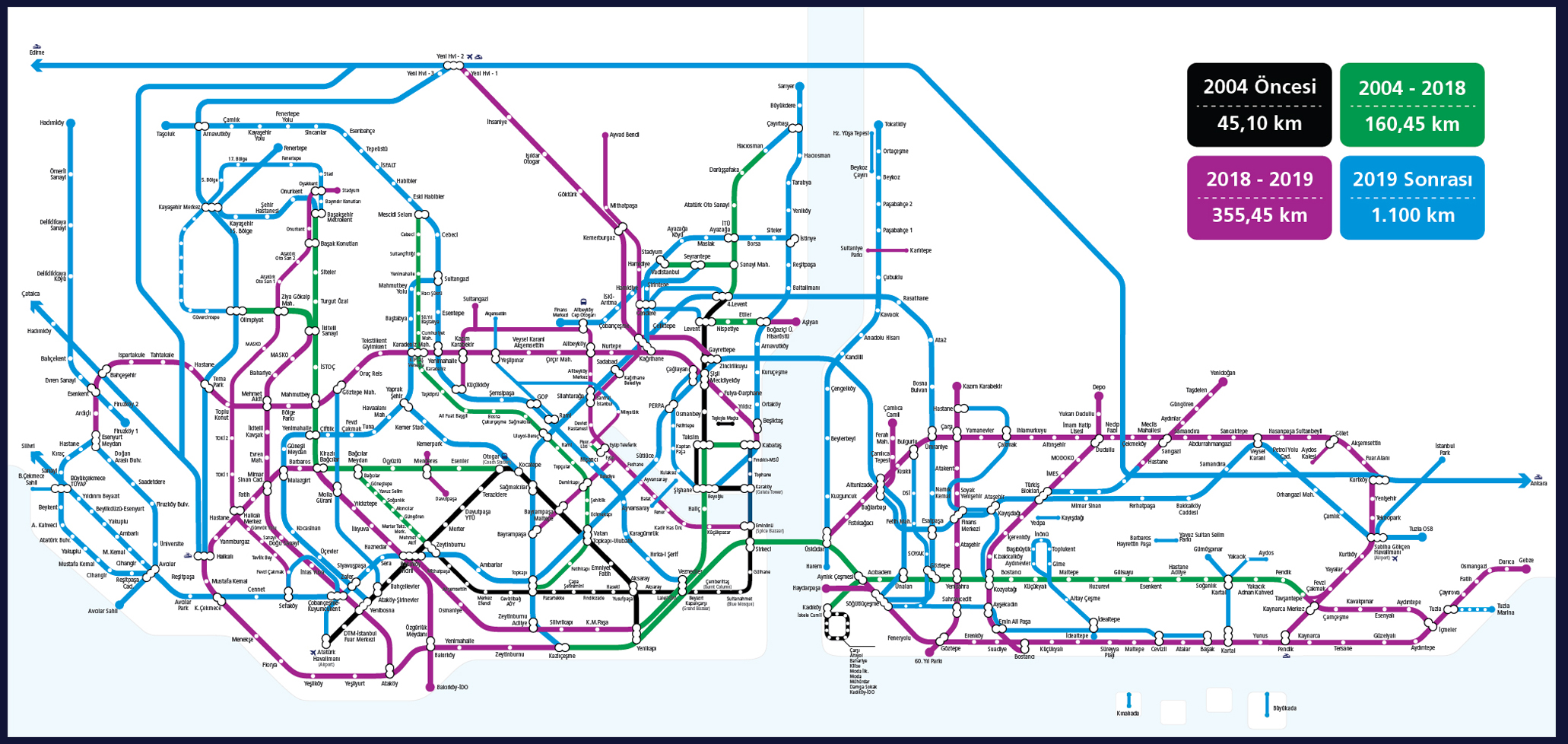 Metro İstanbul olarak yolcu odaklı işletmecilik ve toplu taşımacılıkta hizmet kalitesini yükseltmek amacı ile yapılan çalışmaların en önemlilerinden birisi olan Raylı Sistemler Ağ Haritasına tüm istasyonlarımızda, araçlarımızda ve internet sitemizde rahatlıkla ulaşabilirsiniz.