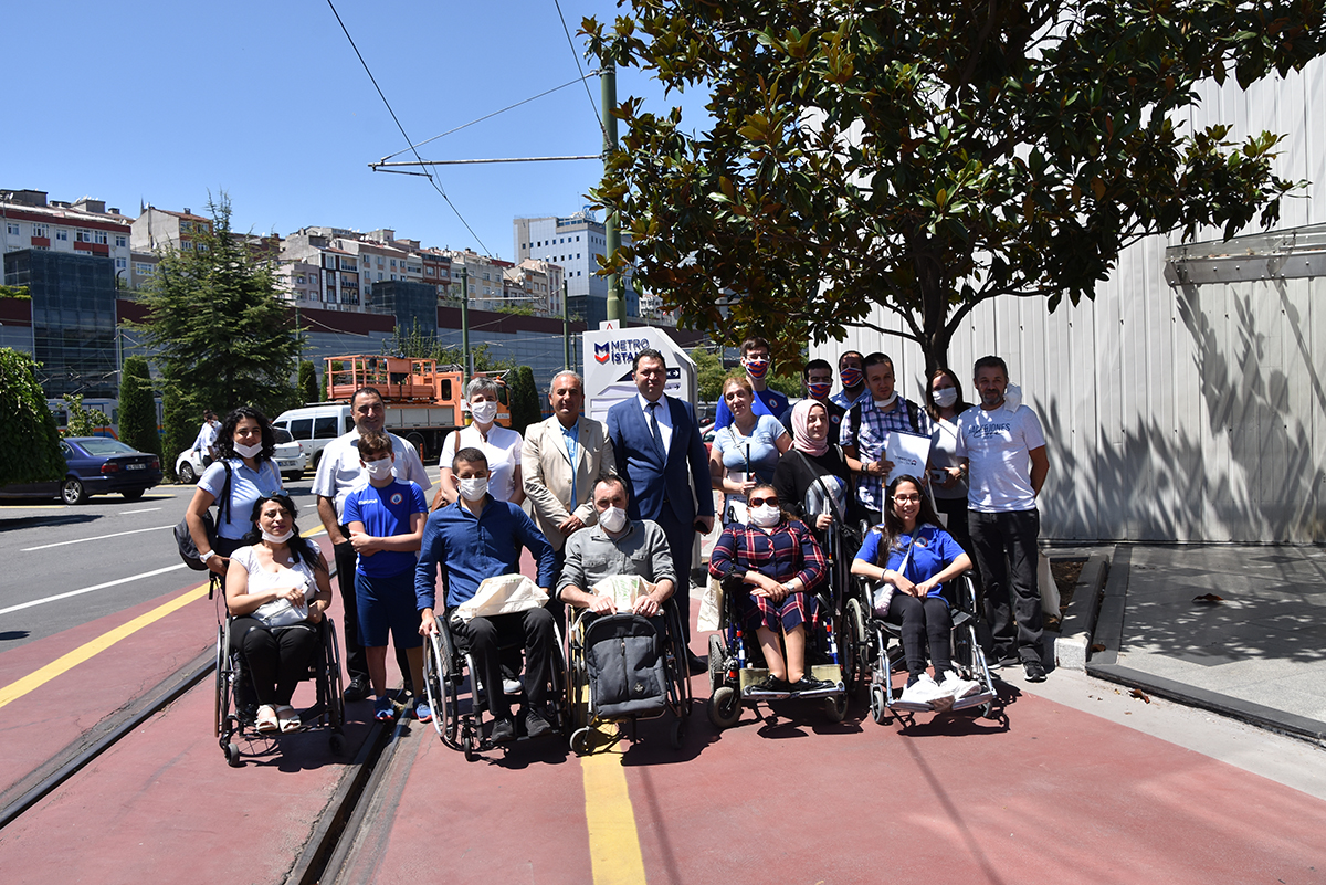 IMM examined M7 Mecidiyekoy-Mahmutbey Metro Line with the disabled citizens before the official opening. M7 Mecidiyekoy-Mahmutbey Metro Line is planned to be recommissioned in a few months. Head of Rail Systems Department Assoc. Dr. Pelin Alpkokin, IMM Rail System Projects Manager Serap Timur, IMM European Region Rail System Assistant Manager Nebahat Omeroglu Metro Istanbul General Manager Ozgur Soy, Metro Istanbul Deputy General Manager Fatih Gultekin, Istanbul Metropolitan Municipality and contractor company officials accompanied a group of 20 people with disabilities, including athletes and IMM staff. A post-trip evaluation meeting was held afterwards. The notes of the meeting will be turned into a booklet with the intention to be used an example for future projects.