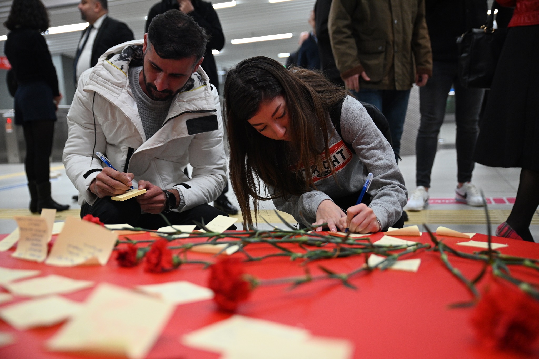 Recognizing the special interest shown by Metro Istanbul passengers, the surroundings of this artwork were transformed into a dedicated memorial area for November 10. An area adorned with Atatürk flowers was set up, featuring a heart-shaped panel where passengers could write notes to Atatürk.